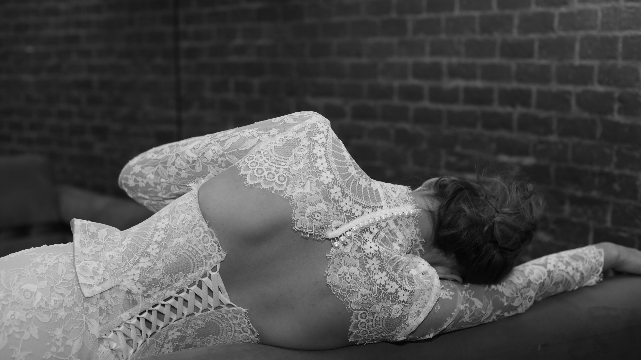 Melodi is a refined lace bridal gown that celebrates elegance through intricate detail and sculpted design. Crafted entirely from delicate floral lace, the gown features a fitted silhouette that gracefully follows the body, creating a long, streamlined look.